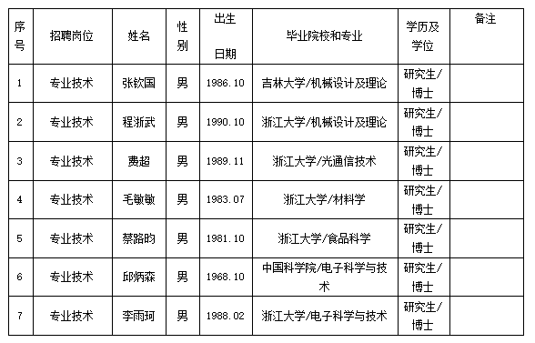 按照《宁波市事业单位公开招聘工作人员实施办法》和2019年浙江大学宁波理工学院公开招聘高层次人才(教师)公告(2019年2月14日)和《2018年浙江大学宁波理工学院公开招聘事业编制工作人员公告》(2018年10月25日)规定的程序,浙江大学宁波理工学院公开招聘工作通过公开报名、统一考试已进入择优聘用程序。根据笔试、面试、考核、体检结果,在合格人员中,经浙江大学宁波理工学院领导班子集体研究择优确定下列7位拟聘用人员,现公示名单如下: