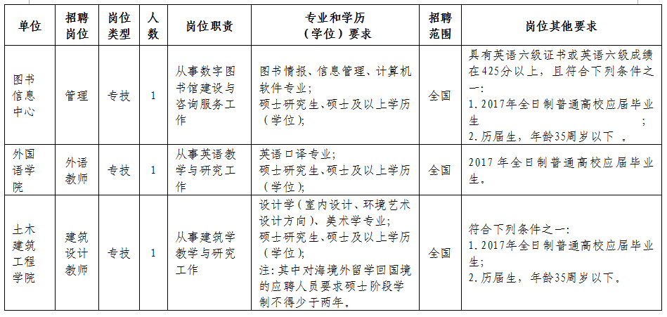 注:年龄、工作经历的计算截止时间为公告发布之日。属于2017年应届毕业的凭就业协议或学生证和学校推荐表报名,须在2017年9月30日前取得并提供相应的学历证书、学位证书。海境外留学回国境人员也可凭国外学籍报名,且须在2017年9月30日前取得国家教育部出具的国境外学历(学位)认证书。